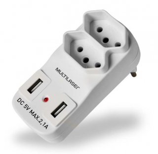 ADAPTADOR 2 SAIDAS 2P+T C/ 2 PORTAS USB2.1A WI331 MULTILASER